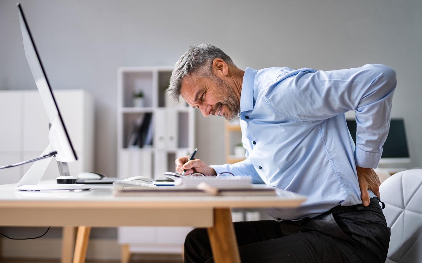 Zaščitite svojo hrbtenico s pravim pisarniškim stolom in pogostimi aktivnimi odmori. Poskrbite za dobro držo in se znebite stresa s preprostimi vajami.